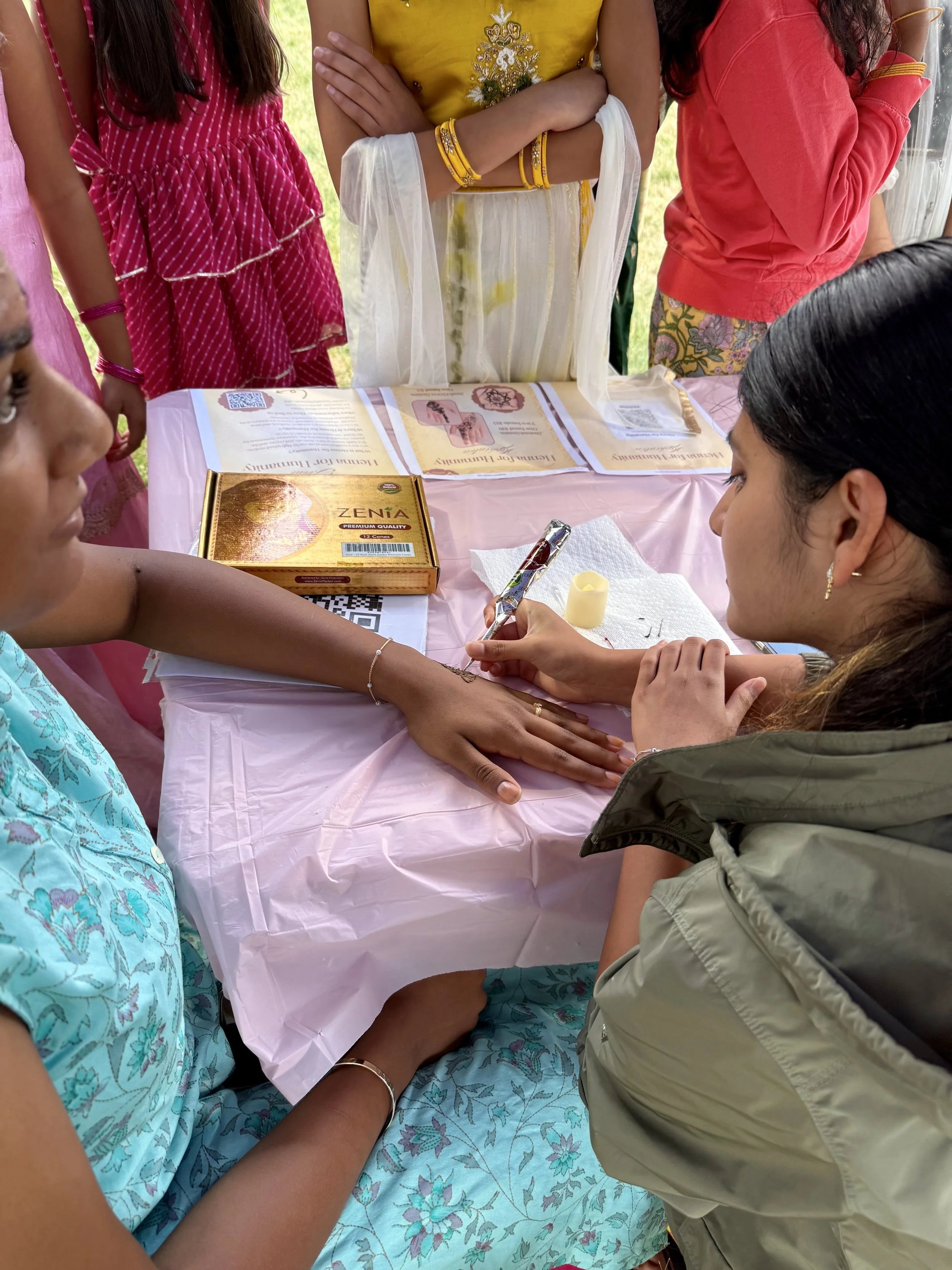 The Indian Arts Gala was an event at Hopkinton High School that showcased many traditional aspects of Indian culture, such as dancing, singing, and more. Aditi and Maanya were proud to be henna artists at this event! They got support from many friends, families, and teachers throughout this celebration. Through this event, the Hopkinton Branch was able to participate in their high school events and spread the cause of Henna for Humanity to more people!